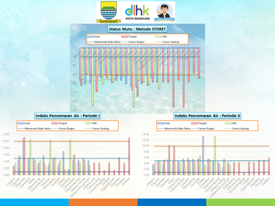 Pemerintah Kota Bandung melalui Dinas Lingkungan Hidup dan Kebersihan sebagai organisasi perangkat daerah yang membantu Wali Kota dalam urusan lingkungan hidup dan persampahan, telah melakukan pemantauan kualitas air sungai di Kota Bandung sebanyak dua kali dalam setiap tahun sesuai Pasal 13 ayat (3) Peraturan Pemerintah Republik Indonesia Nomor 82 Tahun 2001 tentang Pengelolaan Kualitas Air dan Pengendalian Pencemaran Air. Data kualitas air sungai tersebut menjadi dasar penentuan upaya pengelolaan kualitas air dan pengendalian pencemaran air dalam rangka melestarikan fungsi air.